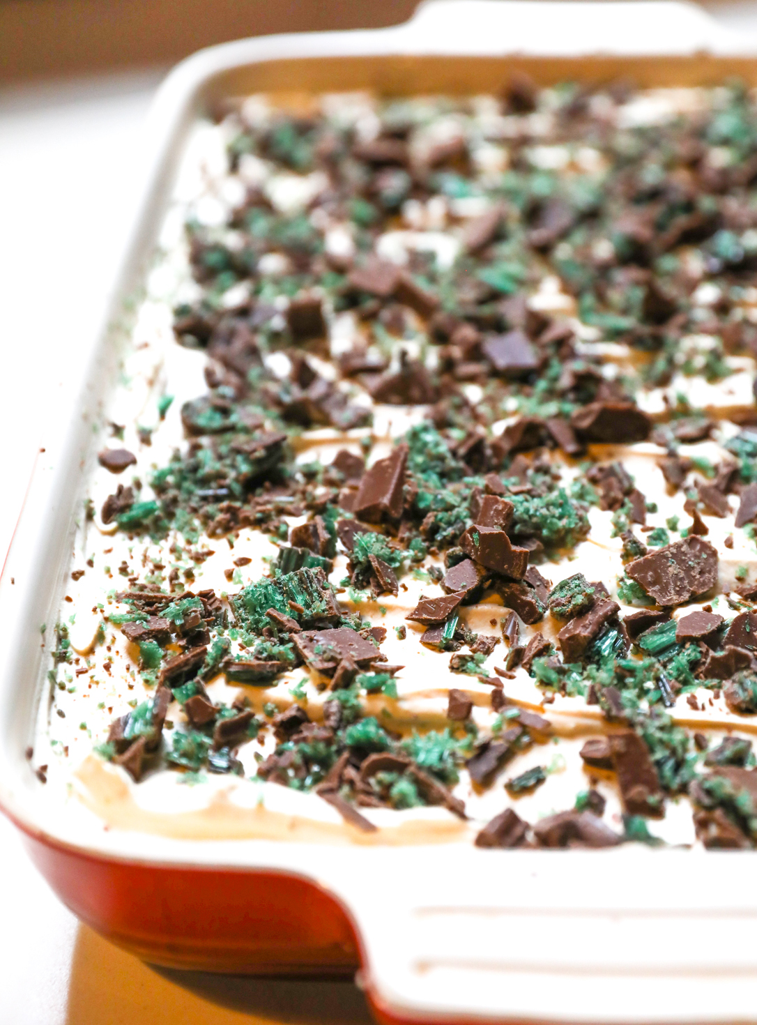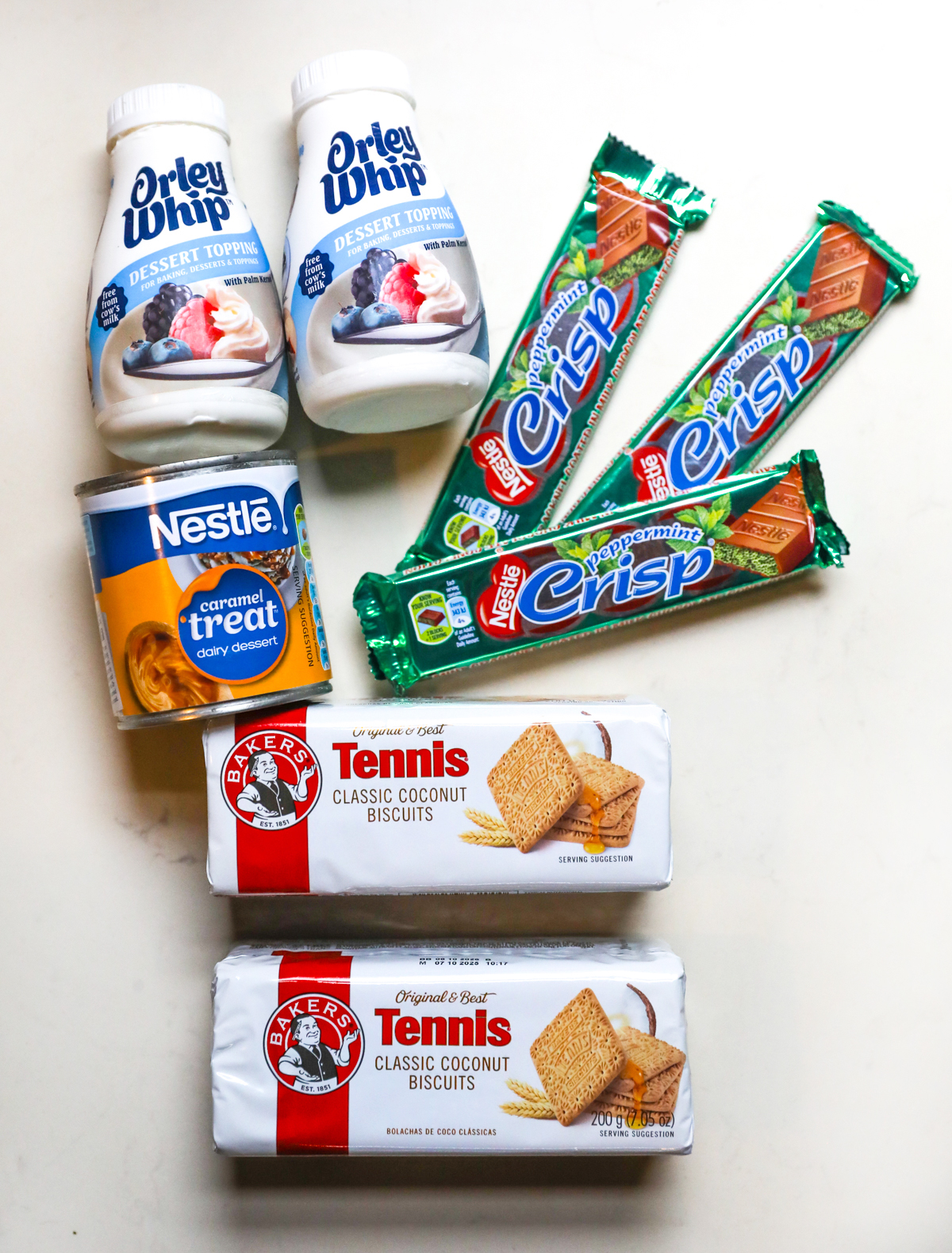 The Peppermint Crisp Tart is a much-loved South African dessert that only requires 4 ingredients and is proudly no-bake. Everyone gets excited to eat this pudding – who can resist, the decadent combination of caramel, cream and spongy Tennis Biscuits? Not me! The peppermint chocolate sprinkled on top is the ultimate signature of this dish so whatever you do, don’t leave it out!