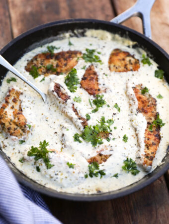 An easy recipe for spice-encrusted chicken breasts which are then fried in olive oil and butter and then drizzled with a creamy garlic sauce and a squeeze of lemon juice. Served over a bed of mashed potatoes or pasta, this creamy garlic chicken recipe will have you coming back for more! It is the perfect…