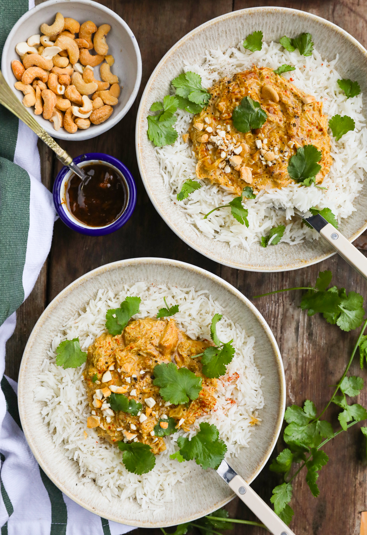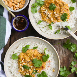 A delightfully easy and tasty chicken curry with the perfect balance of sweetness from the chutney, spice from the curry powder and a lovely texture from the cashews. My whole family loves this curry! I have included both a stovetop method as well as a slow cooker method.