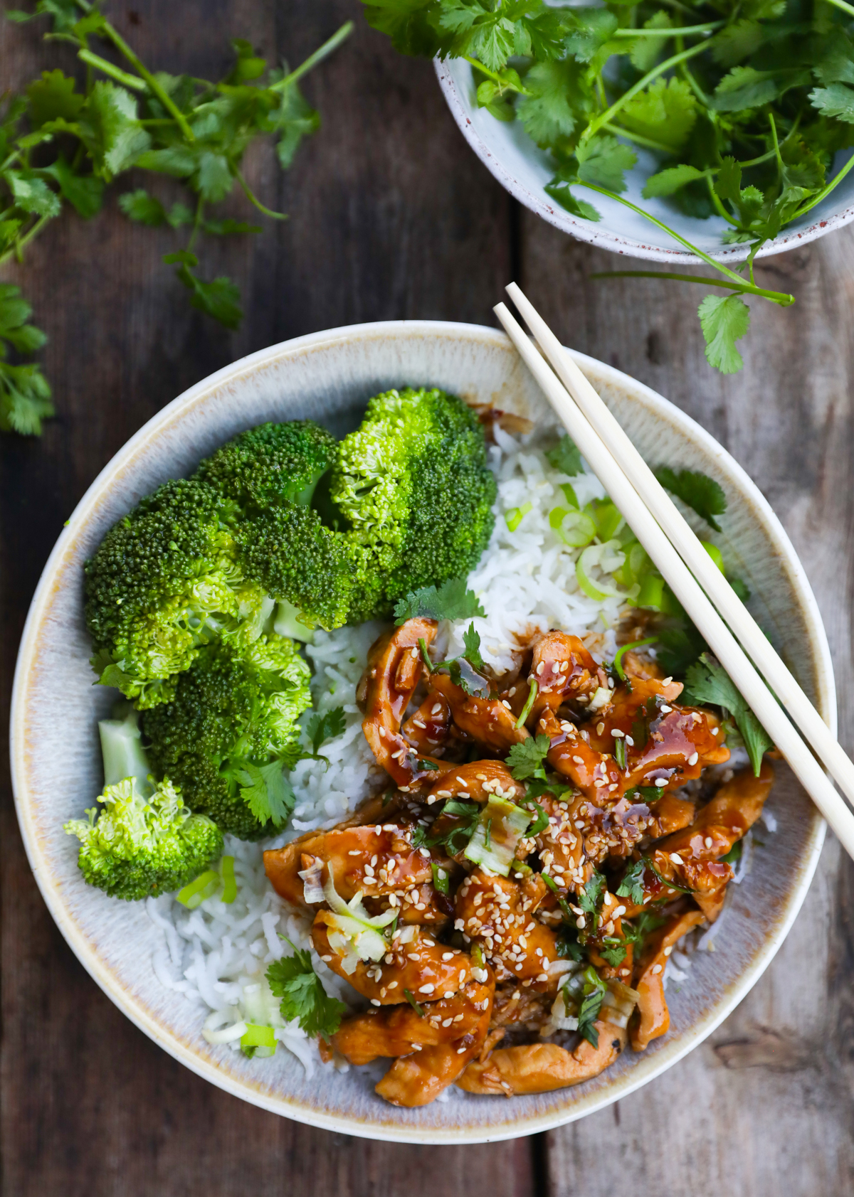 A couple years ago, I posted a Teriyaki Chicken recipe that used store-bought Teriyaki sauce. You can still find that recipe on my website and its perfect if you want a 5-ingredient recipe! Having since made this recipe with homemade teriyaki sauce, I am now hooked on this version and it still feels just as quick!